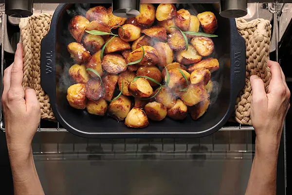 Hardly any kitchen tool can be as versatile as “Roast it!” oven dishes: from savoury to sweet, from the oven to the table. They are heat-resistant up to 260 °C and their thick walls and base made of corrosion-resistant aluminised steel ensure even cooking results and excellent browning. At the same time, they retain the heat and help to keep the food warm at the table. With the PFAS-free ceramic non-stick coating, sticking is a thing of the past and washing up is child's play – so the next dish can be put in the oven right away.