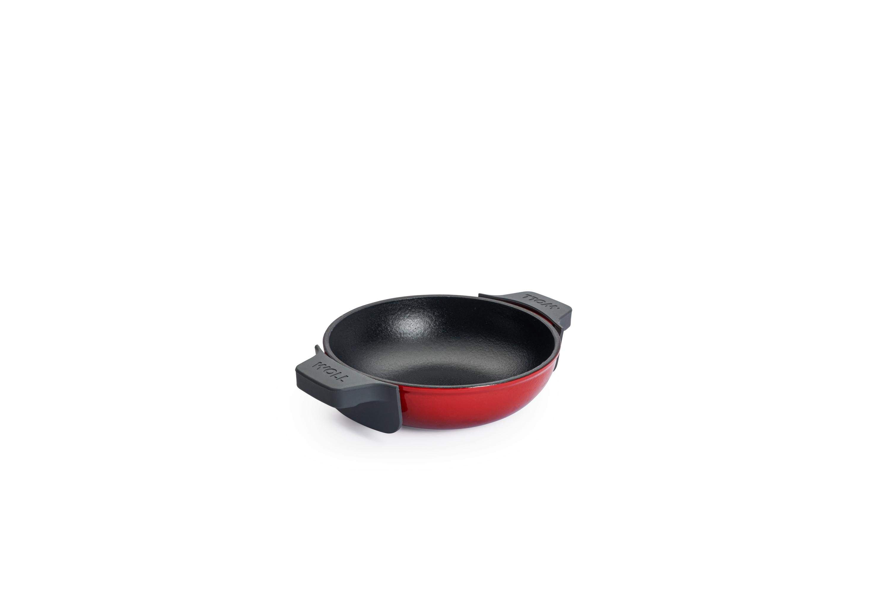 - Die raue Emaillebeschichtung sorgt für eine gute Haftung der Aromen, trotzdem empfiehlt es sich, die Pfanne nach jedem Gebrauch gründlich von Rückständen zu reinigen.